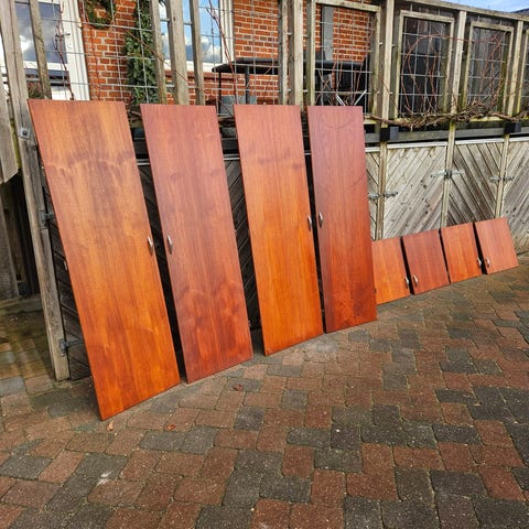 Flotte originale teaktræslåger med originale greb, med låse funktion.
