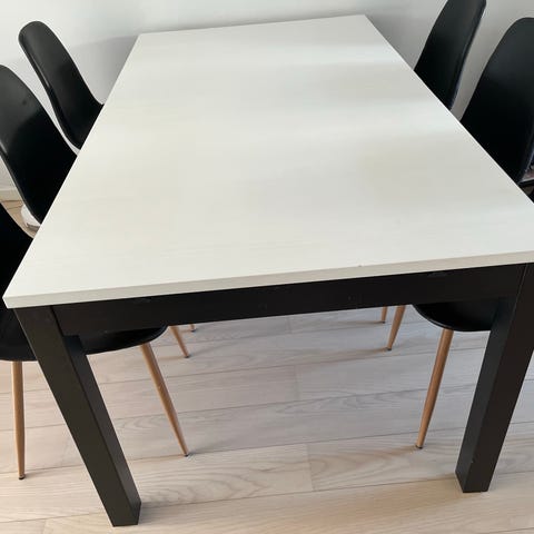 Spisebord fra IKEA i god stand. Bordet er udtrækkeligt og kan bruges som 4-personers og nemt udvides til 6 personer.