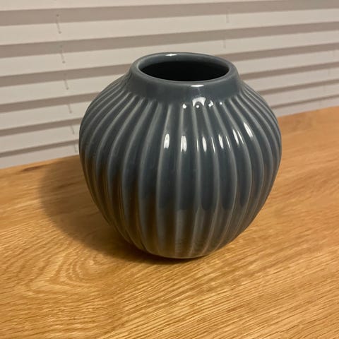 Keramik Vase med grå og hvid stribet mønster.