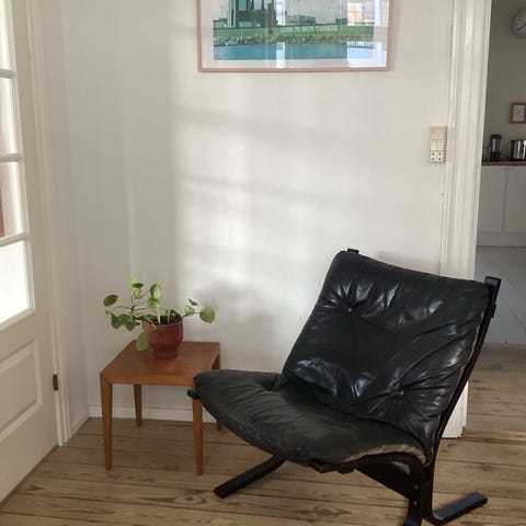 Klassisk norsk design fra 60’erne. Elegant og komfortabel stol i sort læder og bøjet træstel – et ikon inden for skandinavisk design.