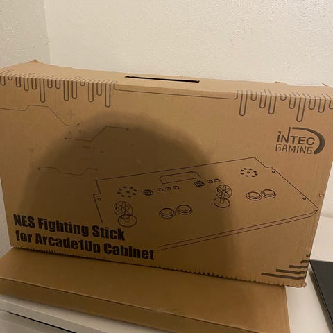 Intec Genesis Fighting Stick designet til brug med arcade1up -kabinetter. Produktet leveres i original emballage og indeholder kontrolknapper og joystick til spil. Og grafik som ligges ovenpå kontrol panel
