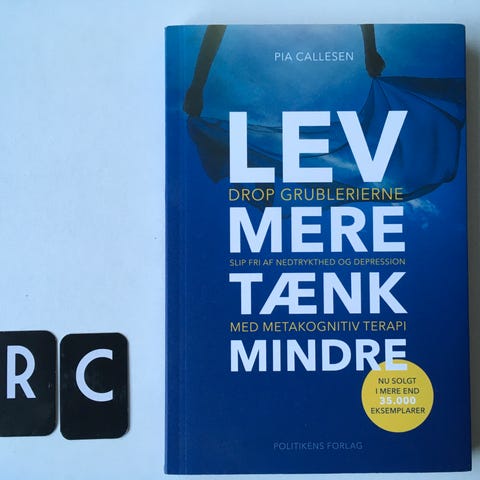 Pia Callesen Lev Mere Tænk Mindre bog med fokus på mental sundhed og teknikker til at reducere bekymringer og øge tilstedeværelse.