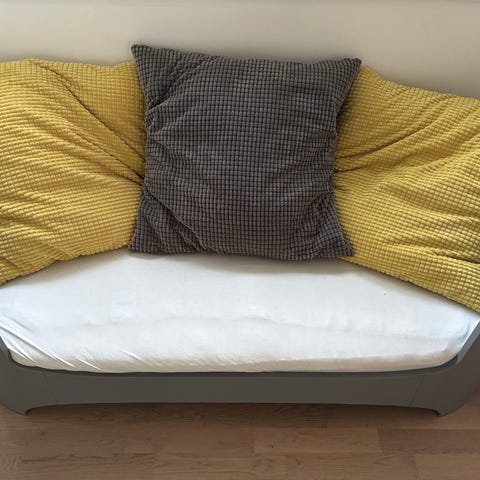 Sengen har været brugt af to børn i et røgfrit og dyrefrit hjem. Der er almindelige brugsspor, men intet der påvirker funktion eller sikkerhed.