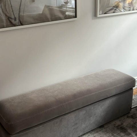 Stor puf i beige boucle stof. Den er i fin stand. Sælges fordi vi ikke længere bruger den.