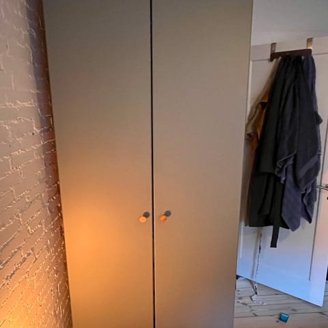 1 IKEA PAX dobbeltskab (100x60x236) med bøjlestang, 3 skuffer og skohylde