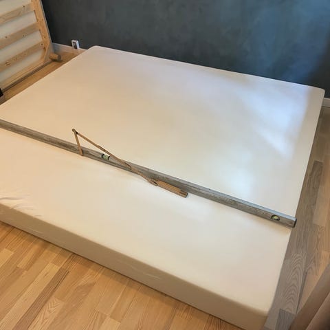 Stor dejlig madras, som vi købte for at undgå sprækken i midten, når vi sov sammen med vores datter. Madrassen fejler ikke noget og er ren og pæn. Vi har blot valgt igen at kunne bruge elevation, som krævede to madrasser Nypris 6898 kroner. Sælges billigt, da den fylder meget 😳