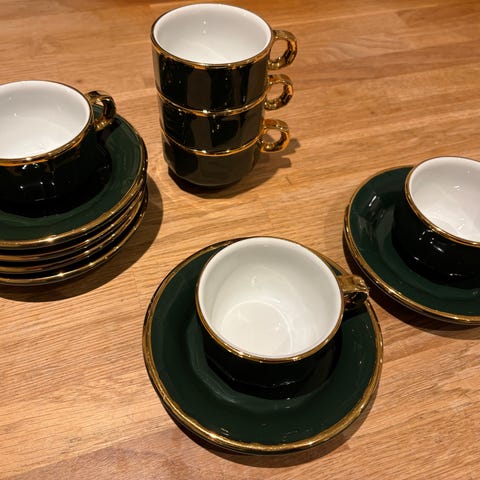 Sæt med 6 kopper og underkopper.