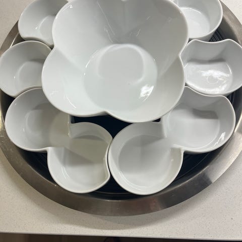 Smukke Bodum rustfri serveringsskåle, bl.a. salatskål (Ø26cm) og to mindre skåle, Ø 16 cm).