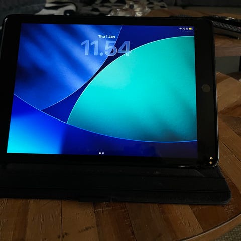 Apple iPad 9th Generation tablet med 64 GB lagerplads. Har altid været i cover og er fejlfri. Sækges grundet opgradering. Kan sendes for 50kr eller afhentes nord for Aabenraa.