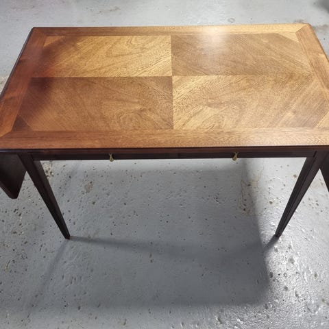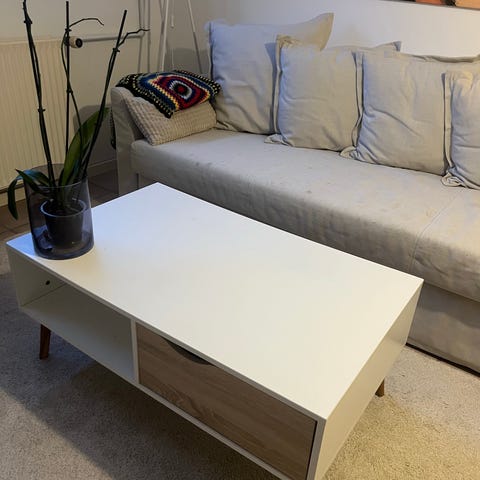 Der er lidt bidemærker i hjørner efter hvalp men kan spartles op igen hvis man er lidt fix på hænderne ☺️ beslag kan skrues af så man kan male og slibe bordet hvis det ønskes