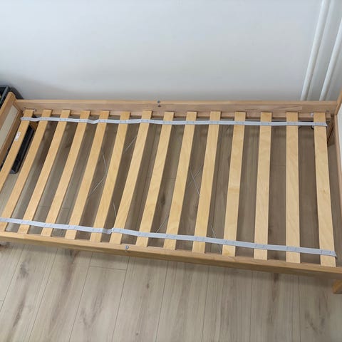 IKEA SNIGLAR juniorseng lavet af bøg. Sengen har en lamelbunde og måler 70x160 cm. Designet til børn.
