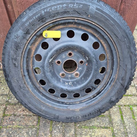 Continental vinterdæk med stålfælge. Har siddet på en Kia Ceed SW. Dækkene er markeret med hvid skrift ift. hvilket hjul de har siddet på (ses på billederne).