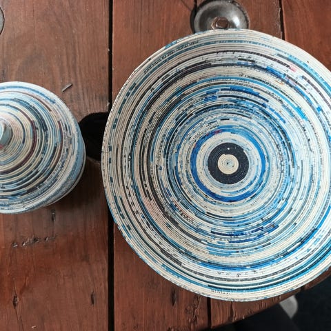 Den høje har lidt mere patina Det måler 18. Cm høj og er 10cm i Dia i toppen