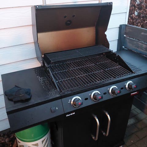 Char Broil 4400 gasgrill. Selve grillen er i ok stand, men de 3 grill riste er noget rustne og skal sandblæses eller udskiftes. Nye kan købes på bilka.dk. derudover er der en brænder som ikke er for god, den kan også købes på bilka.dk. gasflaske medfølger IKKE!!!