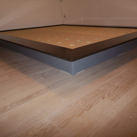 Det er en virkelig fin seng til et sejt værelse. Der medfølger ikke madras