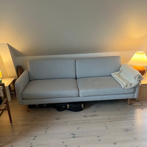 3 Pers sofa samt stor praktisk puf med opbevaring. Sættet er sparsomt brugt og fremstår helt uden pletter eller anden synligt slid. Sættet kommer fra røgfrit samt dyrefrit hjem.