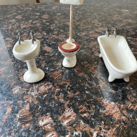 Miniature toilet og toiletpapirholder (str. 4,5x4,5 cm)