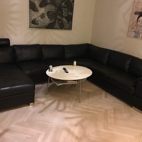 Sort læder chaiselong sofa fra ikke ryger og dyrefrit hjem. Fejler ingenting.