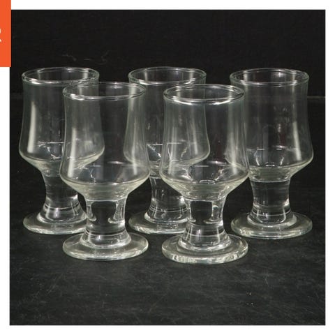 Sæt bestående af syv klare drikkeglas med en størrelse på 8x4 cm. Glassene har en klassisk form med en solid base, der giver stabilitet. Velegnet til servering af små portioner af drikkevarer såsom portvin, shots eller små aperitiffer. Glassene har et elegant og tidløst design.