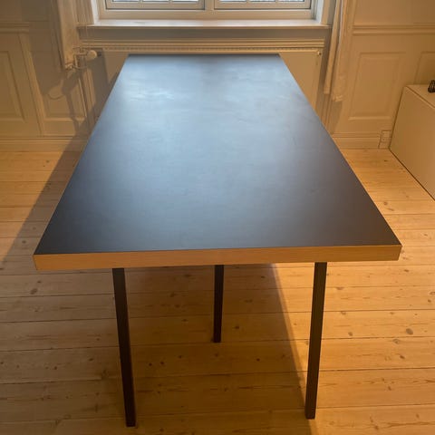 Virkeligt fint hay bord dog brugsspor i den Grå Linoleum - men kan nok høres fint med linoleum rens. Vi flytter og skal derfor sælge det.