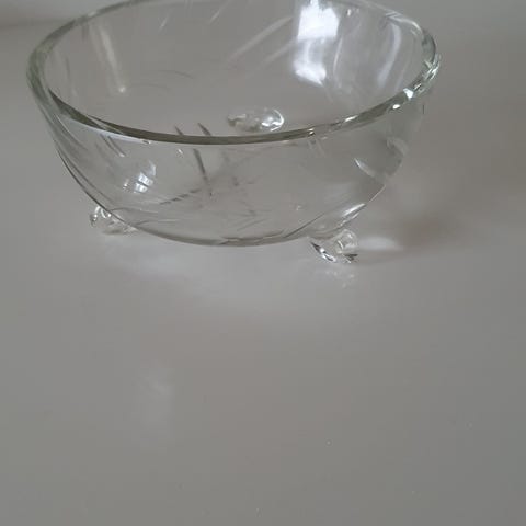 En lille skål lavet af krystal med et smukt skåret design, der giver en klassisk og elegant fremtoning. Skålen har en diameter på 11 cm og en højde på 6 cm, hvilket gør den perfekt til mindre dekorative anvendelser eller til opbevaring af små genstande. Skålen er gennemsigtig og vil passe godt ind i ethvert interiør.