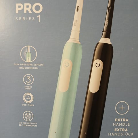 Dette er en elektrisk tandrenser fra Flosser, der kommer i en blå emballage. Den har en længde på 24,5 cm. Produktet har flere indstillinger såsom puls, blød, normal samt en tænd/sluk-knap. Udover tandrenseren indeholder pakken også forskellige mundpleje-relaterede tilbehør, som opbevares i en gennemsigtig plastikkasse.