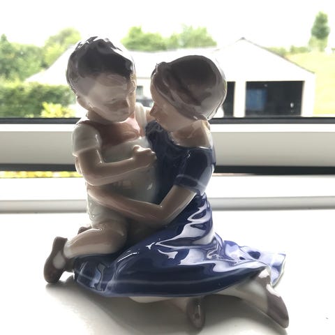 Porcelænsfigur af barn på skammel fra B&G (str. 13x6 cm)
