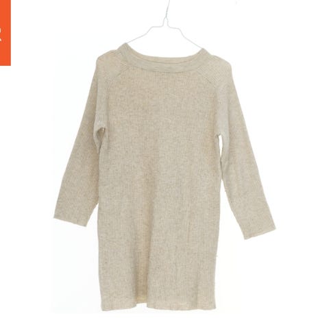 Langærmet kjole i lyse beige og hvide striber.
