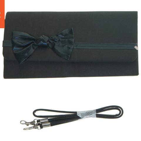 Elegant beige clutch with a textured crocodile pattern and gold-tone corner accents. The clutch is designed to hold essentials such as a wallet, phone, and keys, perfect for formal occasions or an evening out. It features a flap opening for secure storage and a streamlined look. The dimensions of this clutch are 28x14 cm.
