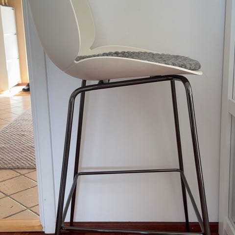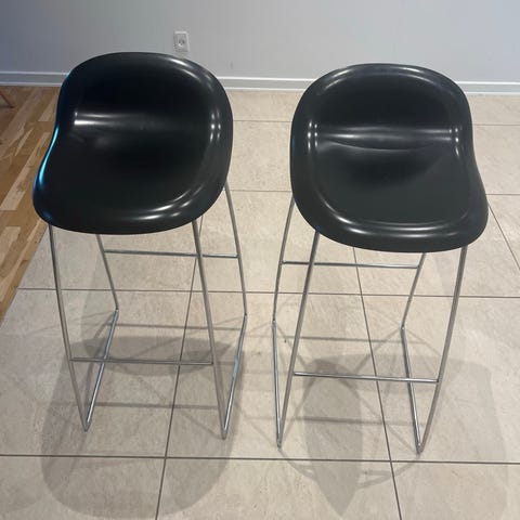 Gubi barstole 2 stk. med rustfrie ben og sort skind - det er den lave model af de to der findes. Meget fin stand og sælges samlet. Prisen er pr. stk. Hay bordet er også til salg