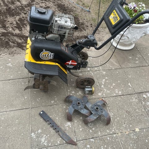 Fin brugt fræser. Kan starte men skal have ordnet eller skiftet karburator da den er utæt. Ellers en fin stor kraftig fræser den kan komme gennem tyk jord. Kraftig TG510 motor med overskud. Årgang 2010. Pæn af sin alder, ikke brugt voldsomt meget. Befinder sig i 7130 Juelsminde. Kan evt leveres mod betaling.
