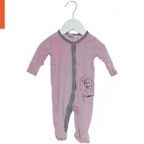 Denne baby heldragt er lyserød med grå kant og knaplukning foran. Dragten har lange ærmer og har et motiv af en Looney Tunes karakter. Den er designet til at holde babyen varm og komfortabel.