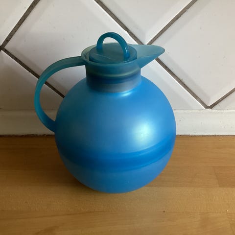 Alfi Kugel Vacuumkande i grå farve. Denne kande har en rund kugleformet krop og er designet til at holde væsker varme eller kolde i længere tid ved hjælp af vakuumisolering. Den har en stor tud og et håndtag for nem hældning og betjening.