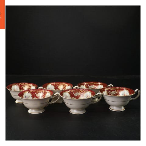 Denne antikke suppeske er fremstillet i metal med et detaljeret mønsteret skaft. Den måler 18 cm i længden. Skeen viser tegn på patina, hvilket giver den en vintage charme. Den skålformede del har en gulnet finish, mens skaftet har et dekorativt mønster, muligvis graveringer.