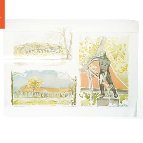 Dette er en farverigt plakat, der skildrer et landskabsbillede fra Frederiksværk med et stort træ i efterårsfarver. Der er også dele af en grøn mark og en bygning på billedet. Plakaten er trykt på papir med tekst 'EFFO' på siden. Størrelsen på plakaten er 54x41 cm.