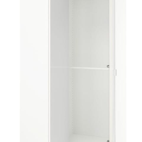 Hjørneskab sælges i farven hvid. Med både skuffer, hylder og ophæng til bøjler, som ses på billederne.