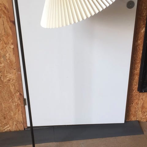 % Flot gammel standerlampe af messing med mønstre på stangen og står på løvefødder. Den originale ledning med stik af bakelit er stadig monteret. Le Klint lignende hvid skærm medfølger. Lampen har desværre fået lidt ridser på fod under flytning. Kun afhentning!