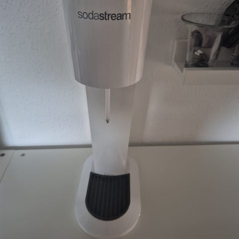 Hvid. Medfølger flaske samt to gaspatroner (tomme).