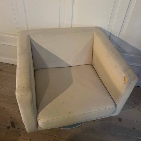 Polstringen er fast med fjederbund. Slidstærkt rødt stof.