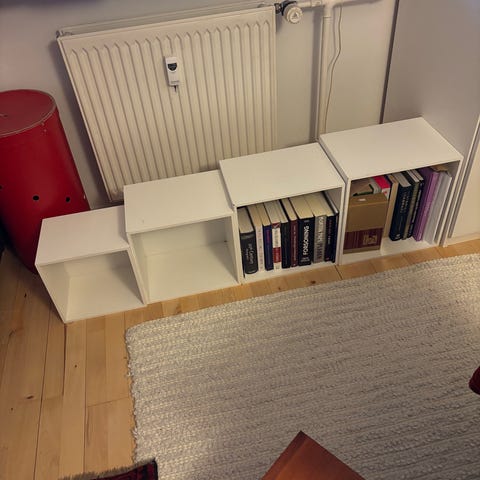 Hvid bogkasse med låger og hylder. Jeg har også et par ekstra låger af samme slags hvis du mangler flere.