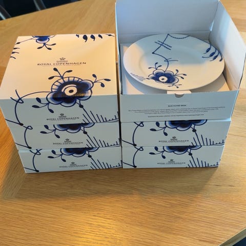 6 stk Royal Copenhagen Blue Fluted Mega Tallerken 22 cm