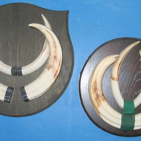 Vildsvinetænder fra Polsk vildsvin. Hulrum i tænderne er fyld og klar til montering.