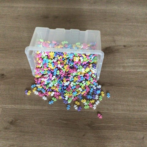 Plus Plus Big børnelegetøj i forskellige farver. Indeholder byggeklodser i flere pastelfarver, opbevaret i en lyserød metalboks med håndtag. Egnet til kreativ leg og konstruktion for børn. Medfølger samlevejledninger.