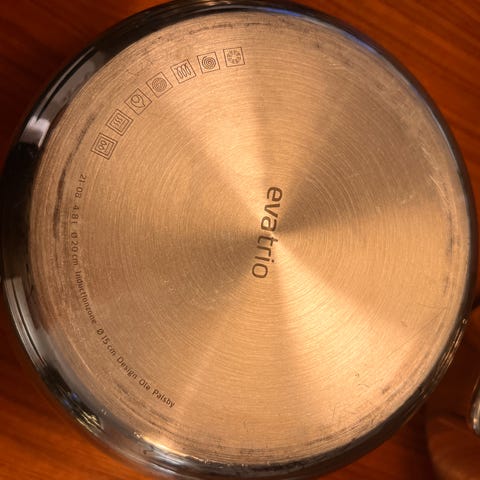 Sættet er lavet i genanvendt rustfrit stål med sandwichbunde. Kan bruges på alle varmekilder og tåler opvaskemaskine.