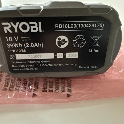 Ryobi 2,0Ah og oplader aldrig brugt.