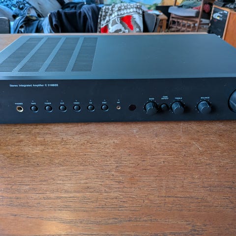 Anlægget spiller rigtig godt med klar og fyldig lyd, og NAD-forstærkeren er kendt for sin kvalitet – også selvom den er af ældre dato.