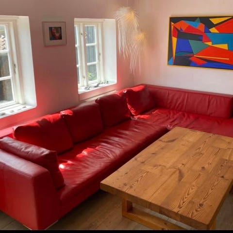 Stor lædersofa med chaiselong
