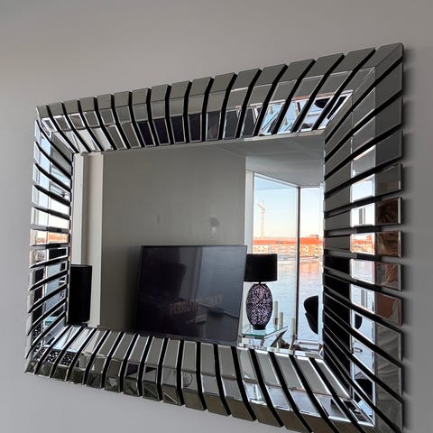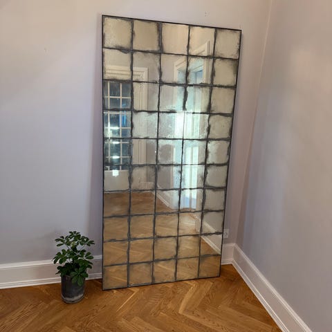 Stort spejl med messingbelagt ramme