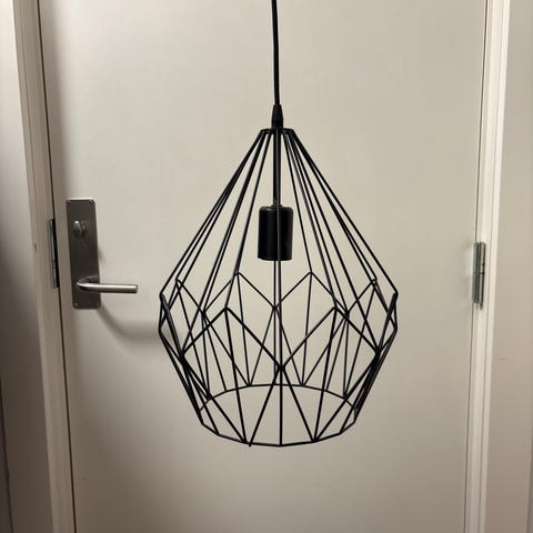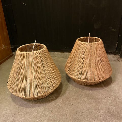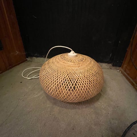 En flettet lampe sælges. Lampen fejler intet og kommer med fatning.