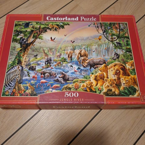 Castorland Puzzle med 3000 brikker, motiv af Misurina Lake i Italien. Puslespillet har et detaljeret landskab med bjerge, sø og skov, hvilket giver en udfordrende og visuelt interessant oplevelse.